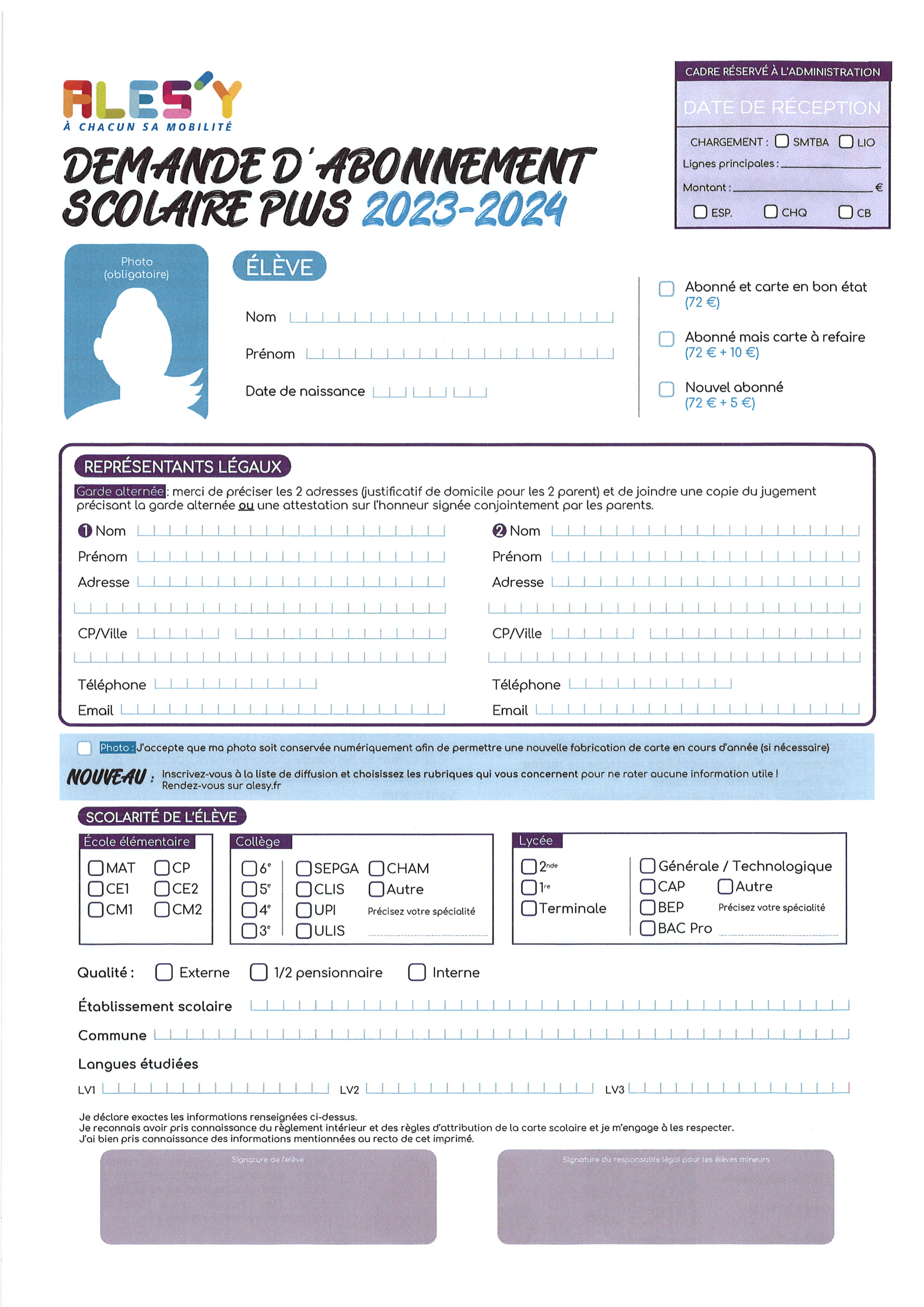 Les élèves qui ont déjà une carte BANG cette année doivent la conserver, ils vont recevoir chez eux le formulaire ALES'Y à compléter, il faudra joindre des pièces ainsi que les frais de dossier. La carte se mettra à jour automatiquement lors du 1er passage devant le valideur.